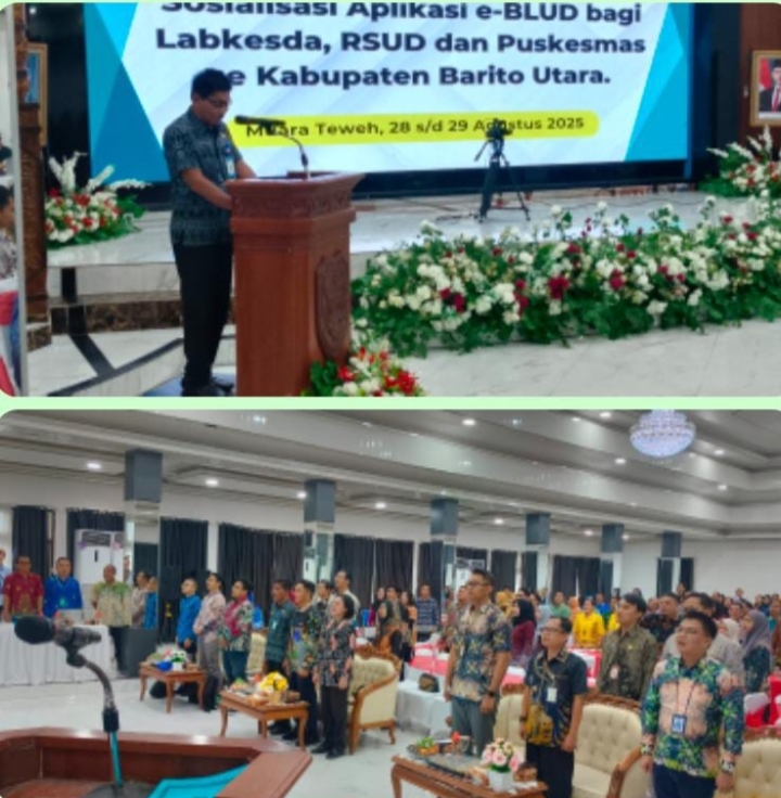 Muara Teweh, pilarnusantaranews.id– Pemerintah Kabupaten Barito Utara melalui Dinas Kesehatan menggelar Sosialisasi Aplikasi e-BLUD bagi Labkesda, RSUD, dan Puskesmas se-Kabupaten Barito Utara, bertempat di Gedung Balai Antang Muara Teweh, Kamis (28/8/2025).